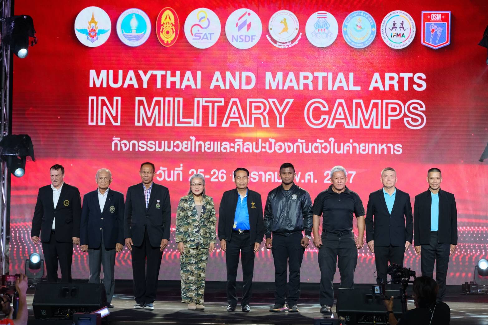 สำหรับโครงการมวยไทยและศิลปะการต่อสู้ป้องกันตัวในค่ายทหาร (Muaythai and Martial arts in Military Camp) จัดขึ้นระหว่างวันที่ 25-26 มกราคม 2567 เนื่องจากเล็งเห็นว่า กีฬา “มวยไทย” เป็นมรดกของชาติ และศิลปะแม่ไม้มวยไทยซึ่งเป็นศิลปะชั้นสูงในการป้องกันตัวในการต่อสู้ระยะประชิด กระทรวงกลาโหมซึ่งมีกำลังพลที่มีวิชาความรู้ด้านมวยและศิลปะการป้องกันตัว ทั้งระดับนักกีฬา และผู้ฝึกสอน เป็นจำนวนมาก และสมาชิกชมรมมวย และศิลปะการป้องกันตัวในค่ายทหารทั่วประเทศ ซึ่งคุณลักษณะของทหารคือ ความมีวินัย ซึ่งเป็นหนึ่งในคุณลักษณะของการเป็นนักกีฬา รวมไปถึงมีหลักสูตร และพื้นที่ในฝึกซ้อมมวย แต่ละปีจะมีกำลังพลที่เป็นพลทหารเข้ามาประจำการ ราว 80,000 นาย ซึ่งบางส่วนมีทักษะมวยติดตัวมา และบางส่วนมีความสนใจฝึกฝนเป็นนักกีฬามวยในอนาคต ปัจจุบันหลักสูตรมวย และศิลปะการป้องกันตัวที่มียังไม่ได้มีการบริหารจัดการอย่างเป็นระบบ ดังนั้นการพัฒนามวยไทย และศิลปะการป้องกันตัวในค่ายทหาร ควรพัฒนาหลักสูตรให้สอดคล้องตามหน่วยงานที่เกี่ยวข้องในไทยรับรอง และต่อยอดกับสหพันธ์มวยไทยที่คณะกรรมการโอลิมปิกสากล (IOC) ให้การรับรอง เพื่อให้ประเทศไทยเป็นศูนย์กลางของมวยไทยโลก ที่คนไทย และต่างชาติต้องมาค้นหาต้นตำรับจากแหล่งกำเนิดที่ถูกต้อง และที่สำคัญองค์กรกีฬาโลกรับรอง โดยใช้มาตรฐานมวยไทยเดียว “One Standard Muaythai” จากประเทศไทยสู่สากล และสากลกลับมายังประเทศไทย ตามคำขวัญ “Spirit is stronger than a gun, We are Muaythai”
