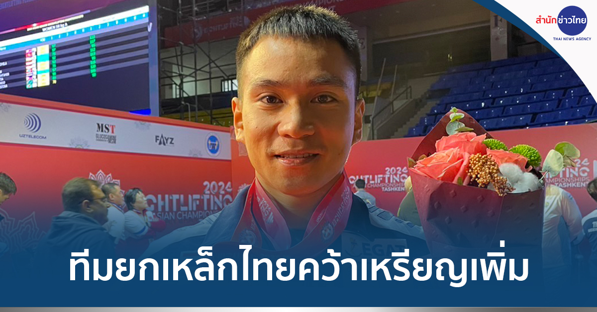 อุซเบกิสถาน 5 ก.พ.- ทีมยกเหล็กไทยผลงานดีต่อเนื่อง อส.ทพ.ธีระวัตร รัตน์เพชร เก็บอีก 1 เหรียญเงิน ท่าคลีนแอนด์เจิร์ก และ 1 เหรียญทองแดง น้ำหนักรวม รุ่น 67 กิโลกรัม ชาย ในศึกยกน้ำหนักชิงชนะเลิศแห่งเอเชีย ประจำปี 2567 ที่กรุงทาชเคนต์ ประเทศอุซเบกิสถาน ล่าสุดจอมพลังไทยคว้าไปแล้ว 1 เหรียญทอง, 6 เหรียญเงิน, 4 เหรียญทองแดง