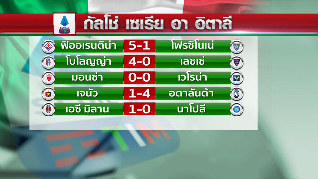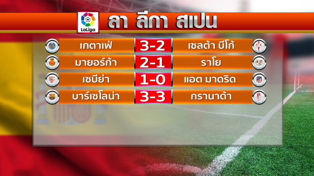 ส่วนผลคู่อื่น ๆ ฮอฟเฟนไฮม์ เสมอ โคโลญจน์ 1-1 ขณะที่ผลพรีเมียร์ลีก อังกฤษ เวสต์แฮม แพ้ อาร์เซนอล 0-6 วิลล่า แพ้ แมนฯ ยูไนเต็ด 1-2