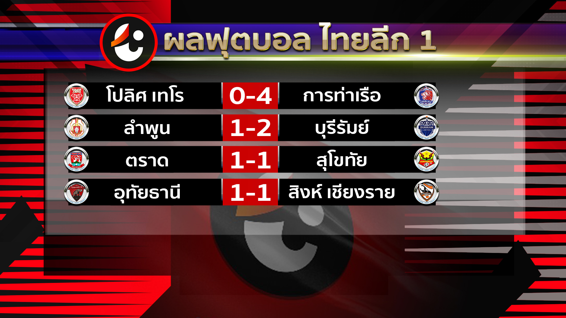 12 ก.พ.- การท่าเรือ เอฟซี และ บุรีรัมย์ ยูไนเต็ด ไม่พลาดทำคะแนนไล่จี้ แบงค็อก ยูไนเต็ด จ่าฝูง หลังเก็บชัยชนะได้ทั้งคู่