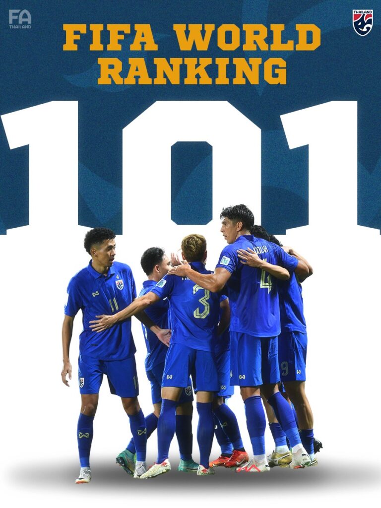 สหพันธ์ฟุตบอลนานาชาติ หรือ ฟีฟ่า ประกาศการจัดอันดับโลก ประจำเดือน กุมภาพันธ์ 2024 ออกมาอย่างเป็นทางการ เมื่อวานนี้ ผลปรากฏว่าทีมชาติไทย ที่ทำผลงานในฟุตบอลเอเชียนคัพ 2023 ด้วยการเอาชนะ คีร์กิซสถาน 2-0, เสมอ โอมาน 0-0, เสมอ ซาอุดีอาระเบีย 0-0 และ แพ้ อุซเบกิสถาน 1-2 ในรอบ 16 ทีมสุดท้าย ขยับขึ้นถึง 12 อันดับ จาก 113 ของโลก มาอยู่อันดับ 101 ของโลกเป็นที่เรียบร้อย กลายเป็นเบอร์ 1 อาเซียน มี 1206.72 คะแนน แซงเวียดนามที่ตกไปอยู่อันดับ 105 ของโลก