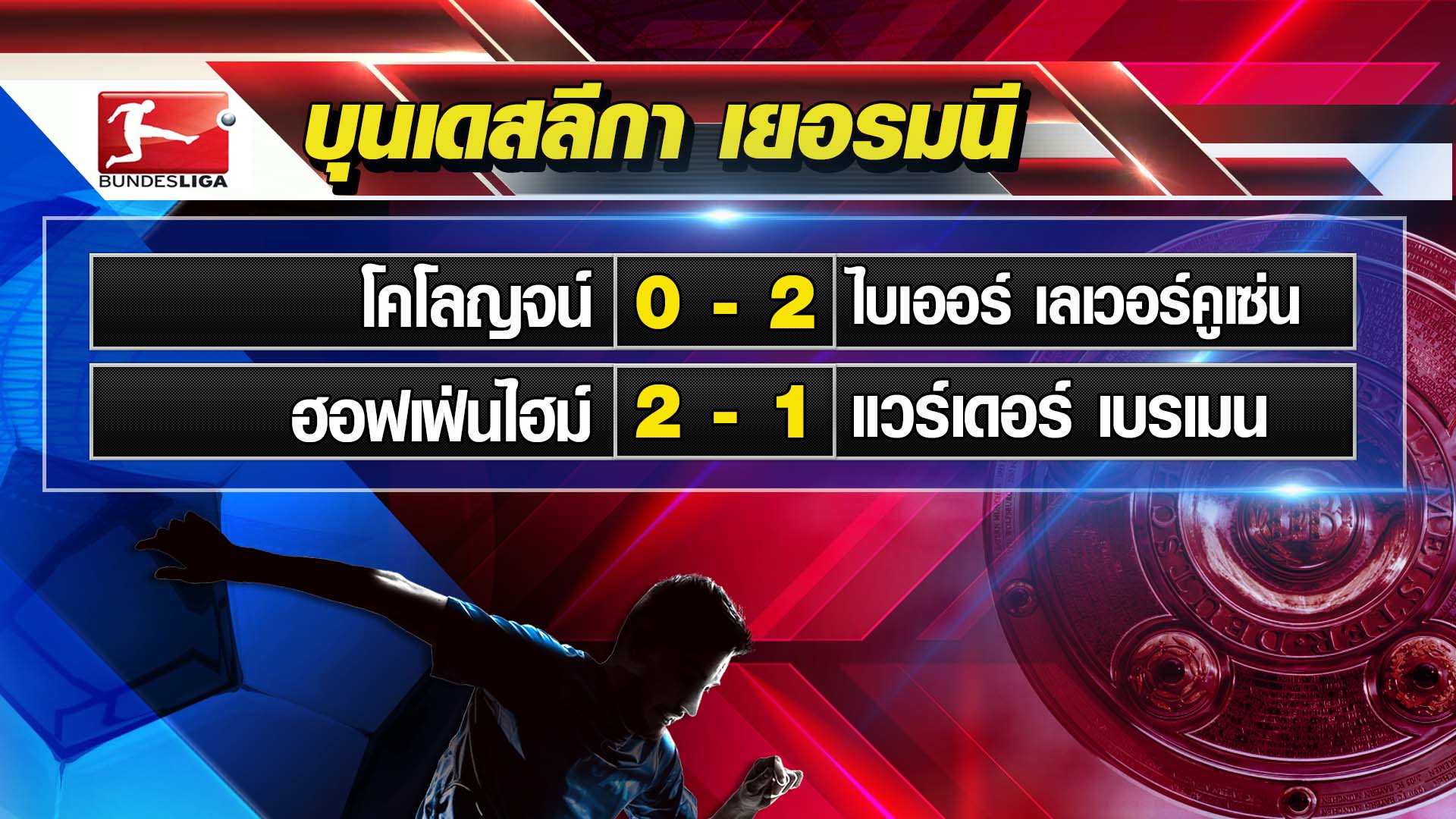 เยอรมนี 4 มี.ค.-เลเวอร์คูเซ่น บุกชนะ โคโลญจน์ ทำแต้มทิ้งห่าง บาเยิร์น มิวนิค อันดับ 2 ถึง 10 แต้มในศึกบุนเดสลีกาเยอรนี