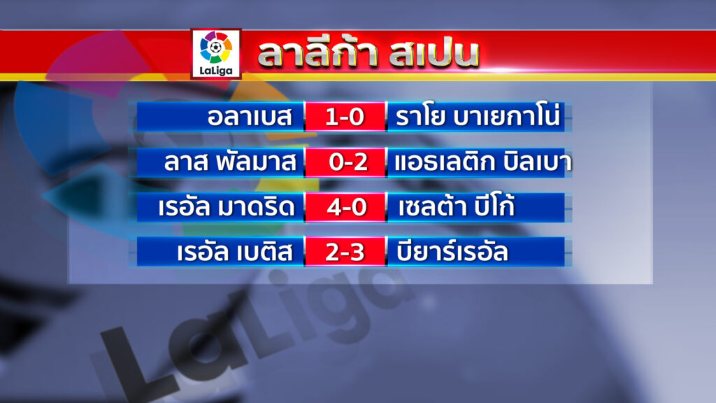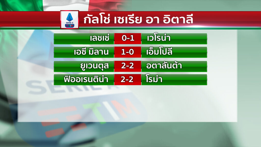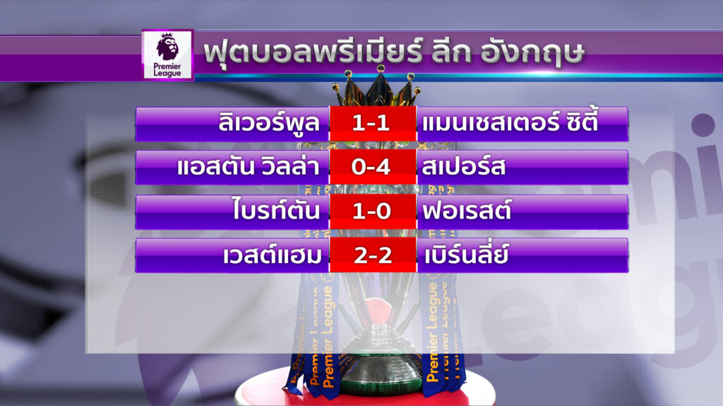 ส่วนผลคู่ที่เหลือ แอสตัน วิลลา แพ้ สเปอร์ส 0-4 , ไบรท์ตัน ชนะ ฟอเรสต์ 1-0 และ เวสต์แฮม เสมอ เบิร์นลี่ย์ 2-2