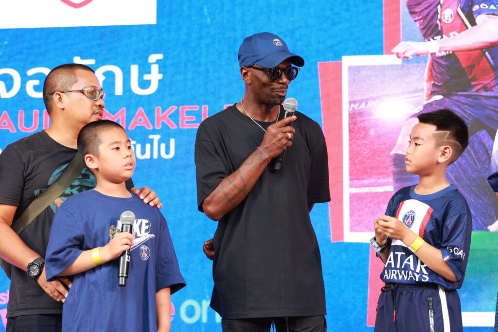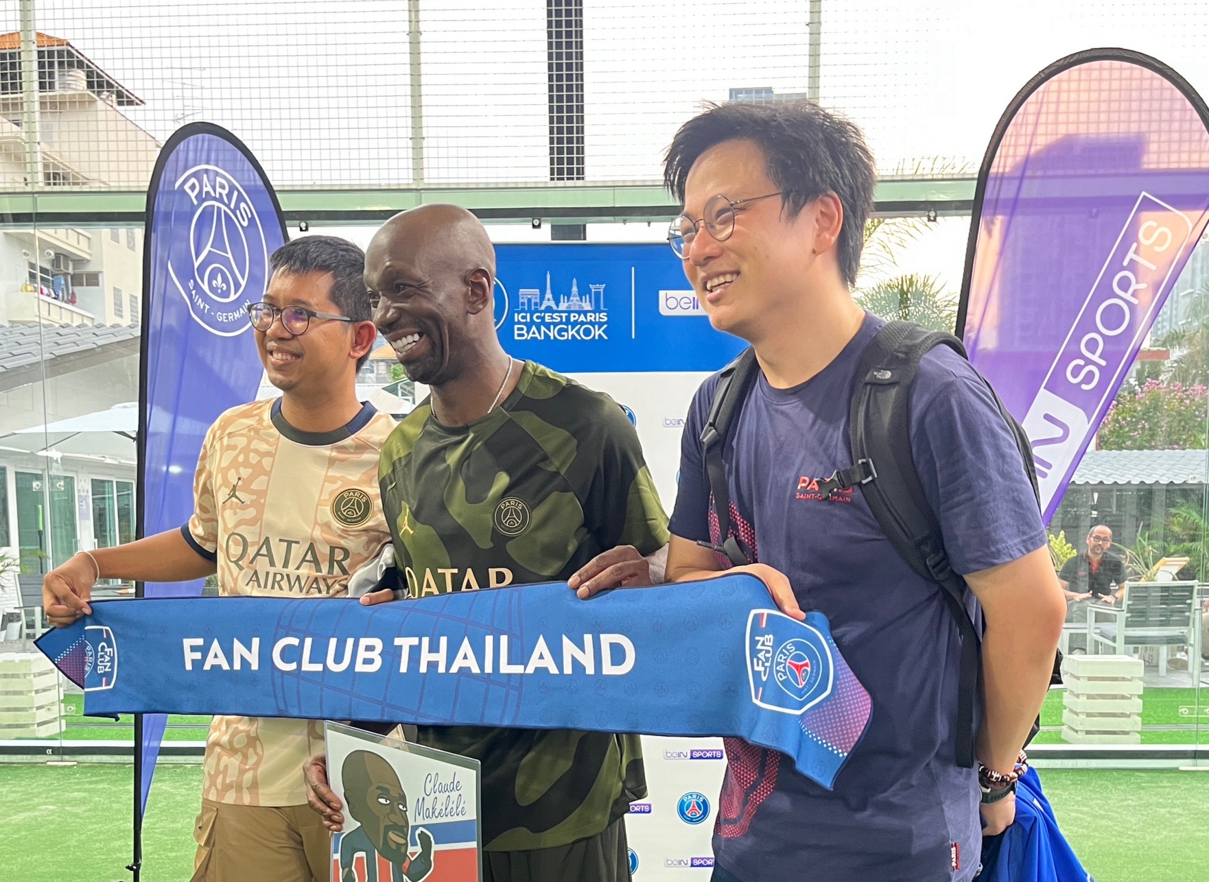 สำหรับบรรยากาศภายในงาน PSG Sawasdee BKK ณ สยามสแควร์วัน แฟนๆ ของ ปารีส แซ็งต์-แฌร์แม็ง แชมป์ ลีก เอิง ฤดูกาลที่ผ่านมา ต่างไม่พลาดเดินทางร่วมงานกันอย่างคึกคัก โดยไฮไลท์ โคล้ด มาเกเลเล่ อดีตผู้เล่นเปแอ็สเฌ และแข้งระดับตำนานของทีมชาติฝรั่งเศส ได้มาปรากฏตัว พร้อมพูดคุยอย่างใกล้ชิด โดยเผยว่า “รู้สึกตื่นเต้นและดีใจที่ได้มาเจอแฟนฟุตบอลที่ประเทศไทย ถือว่าเป็นการมาเยือนเป็นครั้งที่ 2 ผมประทับใจการต้อนรับของคนไทย ที่มีความเป็นกันเอง น่ารักและอบอุ่น“