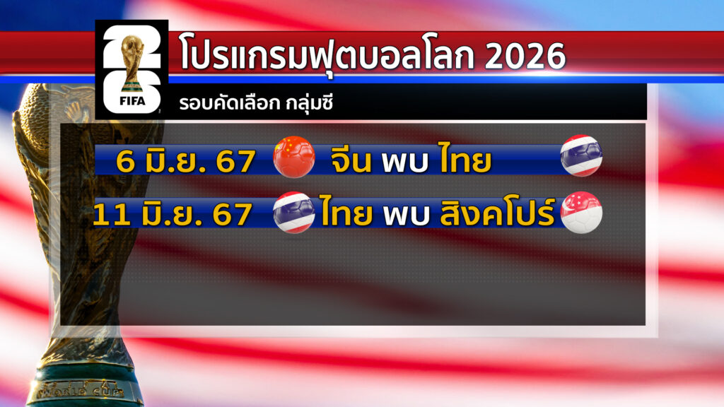 ส่วนโปรแกรม 2 นัดสุดท้าย ทัพช้างศึก มีคิวบุกไปเยือน จีน วันที่ 6 มิถุนายน ต่อด้วยเปิดบ้านพบกับ สิงคโปร์ วันที่ 11 มิถุนายน .-สำนักข่าวไทย