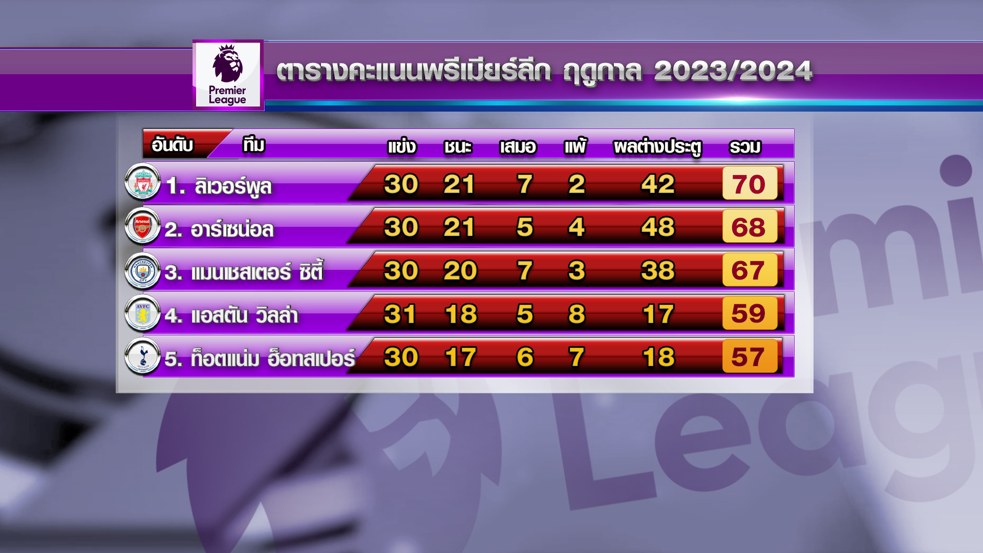 ฟุตบอลพรีเมียร์ลีก อังกฤษ “หงส์แดง”ลิเวอร์พูล ทีมอันดับ 2 เปิดรังแอนฟิลด์ ชนะ เชฟฟิลด์ ยูไนเต็ด ทีมในโซนตกชั้น 3-1 โดยเกมนี้ “หงส์แดง” ได้ประตูนาที 17 จาก จาก อิโว เกอร์บิช ผู้รักษาประตูเชฟฟิลด์ เตะบอลไปติดบล็อก ดาร์วิน นูนเญซ กระดอนเข้าประตู แต่นาทีที่ 58 เชฟฟิลด์ ได้ประตูตีเสมอ 1-1 จากการสกัดเข้าประตูตัวเองของ คอเนอร์ แบรดลีย์ จากนั้นลิเอวร์พูลมายิง 2 ประตูจาก อเล็กซิส แม็คอัลลิสเตอร์ นาทีที่ 76 และลูกโหม่งของโคดี กัคโป นาทีที่ 90 ทำให้ ลิเวอร์พูล เก็บเพิ่มเป็น 70 คะแนนจาก 30 นัด แซง “ปืนใหญ่” อาร์เซนอล กลับขึ้นไปรั้งจ่าฝูงอีกครั้ง โดยนำอาร์เซน่อล อยู่ 2 คะแนน และนำแมนฯ ซิตี้ อันดับ 3 อยู่ 3 แต้ม ส่วน เชฟฟิลด์ เตะ 30 นัดมี 15 คะแนน อยู่อันดับสุดท้าย