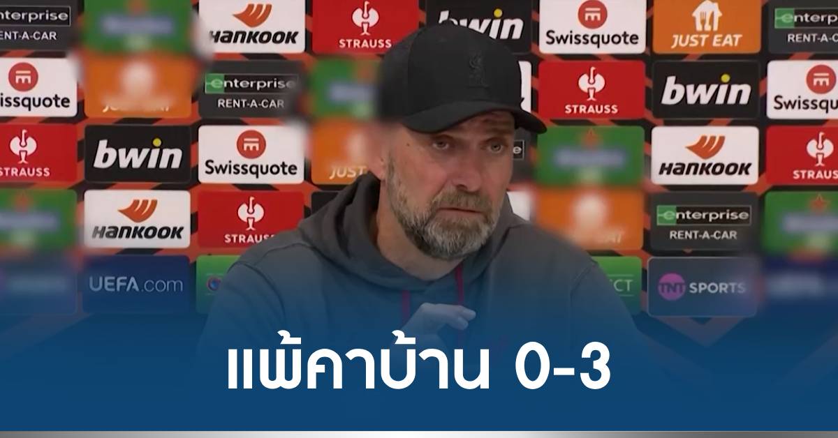 อังกฤษ 12 เม.ย.-เจอร์เก้น คล็อปป์ กุนซือลิเวอร์พูล ยอมรับลูกทีมโชว์ฟอร์มกันได้ย่ำแย่ จนเป็นเหตุให้แพ้ อตาลันต้า คาบ้าน 0-3 โอกาสตกรอบฟุตบอลยูโรป้าลีกสูง