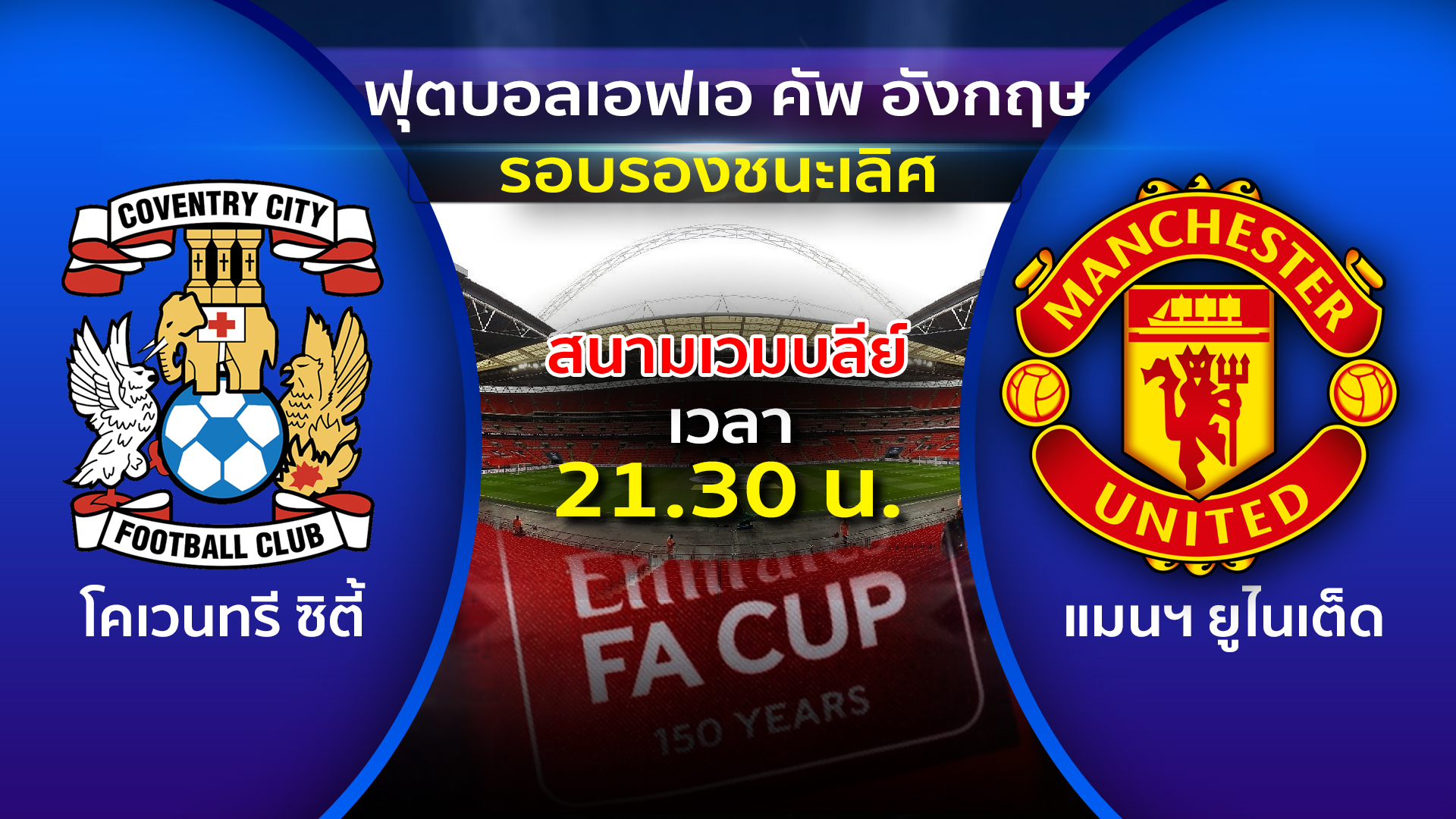 โปรแกรม เอฟเอ คัพ อังกฤษ รอบรองชนะเลิศ อีก 1 คู่ คืนนี้ ที่สนาม เวมบลีย์ เวลา 21.30 โคเวนทรี ซิตี้ พบ แมนฯ ยูไนเต็ด