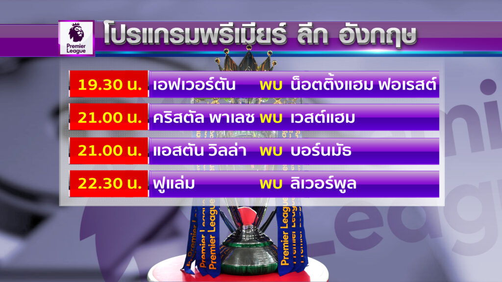 โปรแกรมพรีเมียร์ลีก อังกฤษ คืนนี้