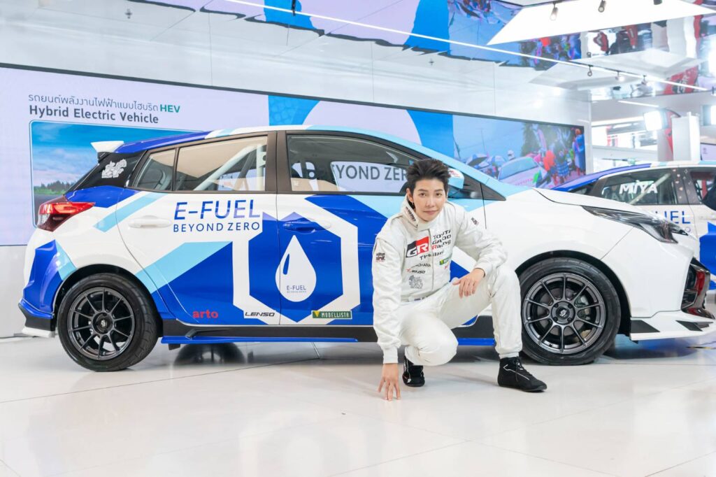 “นอกจากนั้น เราขอเปิดตัวรถ 3 คัน ที่ล้วนใช้เชื้อเพลิงที่ความเป็นกลางทางคาร์บอน เพื่อมุ่งสู่เป้าหมายความเป็นกลางทางคาร์บอน ภายใต้กลยุทธ์ความหลากหลายด้านทางเลือก เริ่มจาก Yaris e-fuel และ Ativ e-fuel ที่จะเข้าร่วมรายการ Yaris One Make Race และยังมี Yaris e-fuel ที่จะร่วมรายการ Thailand Super Series รวมถึง Altis e-fuel จะร่วมรายการ Idemitsu Super Endurance ขอให้ทุกท่านร่วมส่งกำลังใจและสนับสนุนนักแข่งจากทีมแข่ง Toyota Gazoo Racing Thailand กันนะครับ”