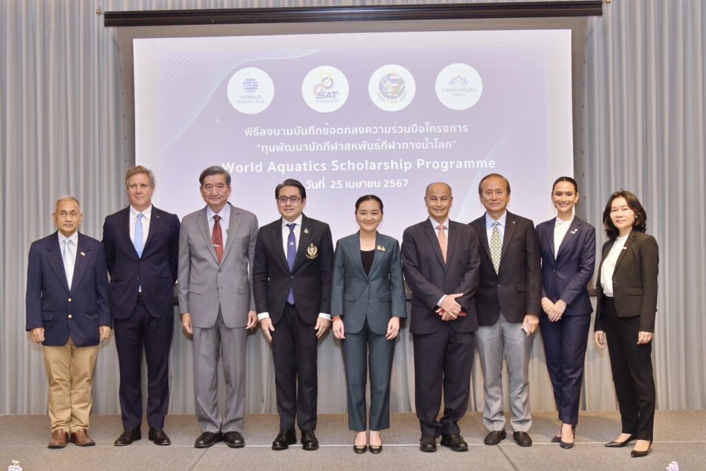 ทั้งนี้ การลงนามบันทึกข้อตกลงร่วมกัน มีขึ้นระหว่างนายฮุสเซน อัล-มุซาลลัม ประธานสหพันธ์กีฬาทางน้ำโลก พล.อ.ศิริชัย ดิษฐกุล อุปนายกสมาคมกีฬาว่ายน้ำ และนางสาวมาริษา เย็นบำรุง กรรมการบริหารสโมสรธัญญปุระ รวมไปถึงการกีฬาแห่งประเทศไทย (กกท.) ขณะที่นายก้องศักดิ์ ยอดมณี ผู้ว่าการ กกท. ได้ร่วมลงนามไปก่อนนี้แล้ว บันทึกข้อตกลงนี้จะเป็นการยืนยันความร่วมมือของสมาคมกีฬาว่ายน้ำแห่งประเทศไทยในการสนับสนุนอำนวยความสะดวกในการขอวีซ่าและการต่ออายุให้กับนักกีฬาที่ได้รับทุนเพื่อเข้าร่วมการฝึกซ้อมและพักอาศัยในประเทศไทย ซึ่งเป็นเรื่องสำคัญเพื่อสนับสนุนและส่งเสริมการพัฒนาทางด้านกีฬาทางน้ำของภูมิภาคและของโลก