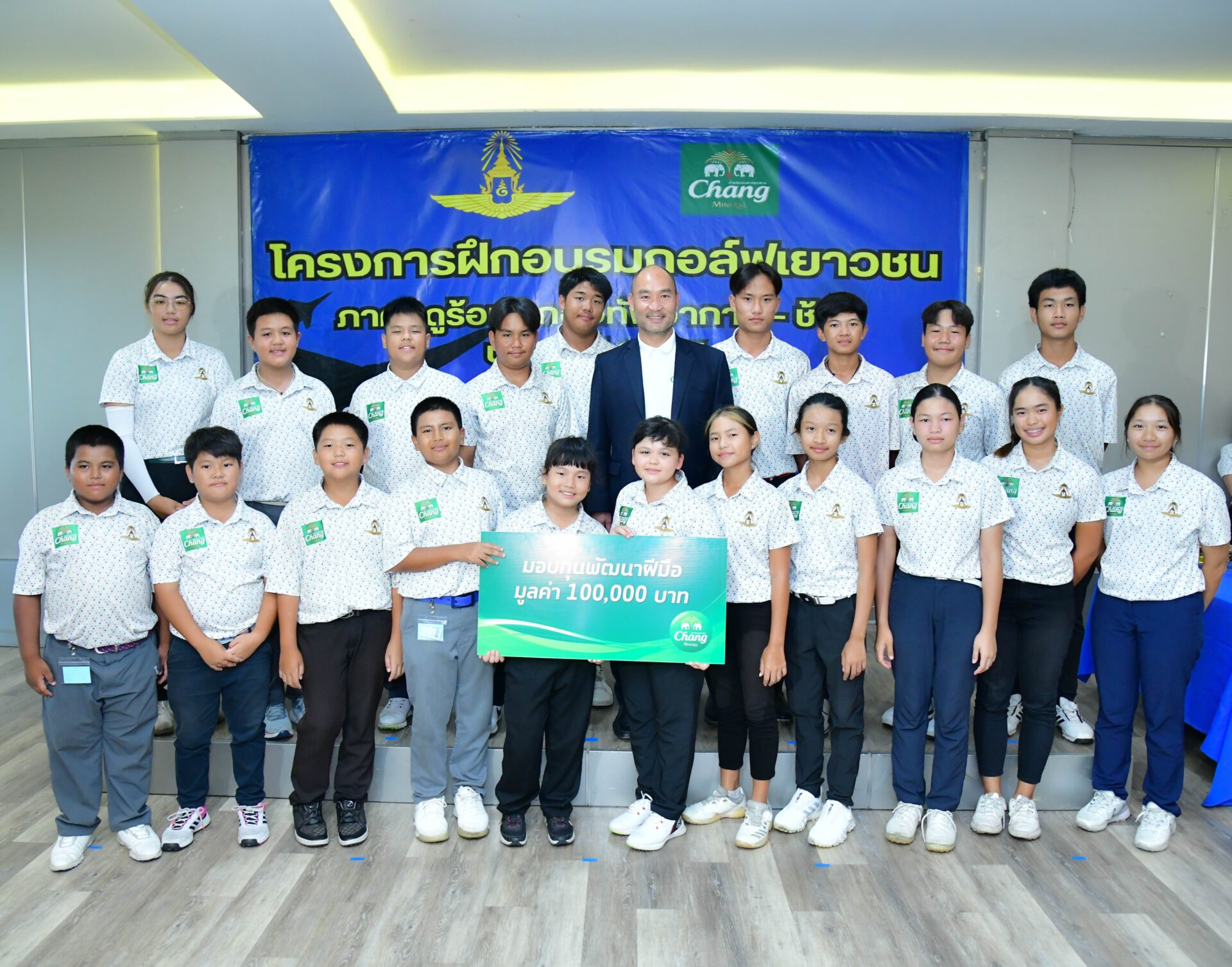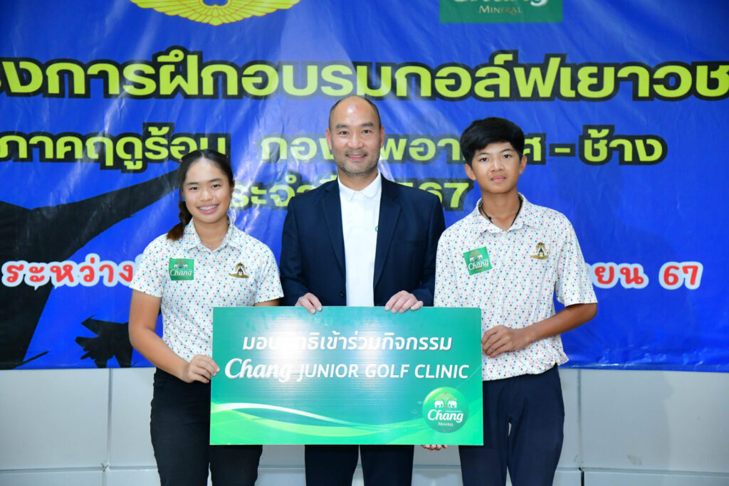 คุณโรจนสิทธิ์ มีนิจสิน รองผู้อำนวยการฝ่ายกีฬา บริษัท ไทยเบฟเวอเรจ จำกัด (มหาชน) โดยน้ำแร่ธรรมชาติตราช้าง กล่าวว่า “ช้าง” ได้ร่วมสนับสนุนส่งเสริมและพัฒนาวงการกีฬากอล์ฟไทยมากว่า 17 ปี โดยมีความมุ่งมั่นในการสร้างความยั่งยืนให้กับวงการกอล์ฟไทย ผ่านการสร้างนักกอล์ฟ ตั้งแต่ระดับเยาวชนที่มีคุณภาพสู่สังคม สำหรับโครงการฝึกอบรมกอล์ฟเยาวชนภาคฤดูร้อน “ช้าง – กองทัพอากาศ” ประจำปี 2567นี้ ก็ถือว่าประสบความสำเร็จไปด้วยดี และมีน้องๆหลายคนที่โชว์ศักยภาพอันโดนเด่นให้เราได้เห็น วันนี้ทาง “ช้าง” จึงขอมอบทุนพัฒนาฝีมือ จำนวน 20 ทุน ทุนละ 5,000 บาท รวมทั้งสิ้น 100,000 บาท ให้น้องๆนำไปใช้ฝึกฝนและพัฒนาตนเองอย่างต่อเนื่อง นอกจากนี้ยังมีน้องๆในรุ่นอายุ 13-18 ปี ที่โชว์ฟอร์มได้อย่างดีเยี่ยม ทางช้างจึงขอมอบสิทธิ์ในการเข้าร่วมการอบรมพัฒนาทักษะกอล์ฟ “ช้าง ไทยแลนด์ จูเนียร์ กอล์ฟ คลินิก 2024” ให้น้องๆจำนวน 2 คน ซึ่งได้แก่ “น้องธาม” ธิติวุฒิ เปี่ยมสัมฤทธิ์ และ “น้องกะทิ” งามพรรณ จันทนะ โดยจะเริ่มอบรมพร้อมกันในช่วงปลายปีนี้”