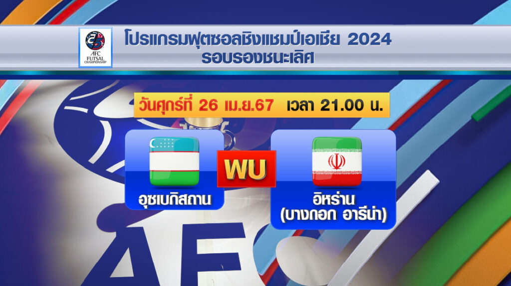 ส่วนเกมอีกคู่รอบรองชนะเลิศ เวลา 21.00 น. อุซเบกิสถาน พบ อิหร่าน ที่สนามบางกอก อารีนา ผู้ชนะคู่นี้จะไปเจอทีมชาติไทย ในรอบชิงชนะเลิศ แข่งขันวันที่ 28 เม.ย.นี้