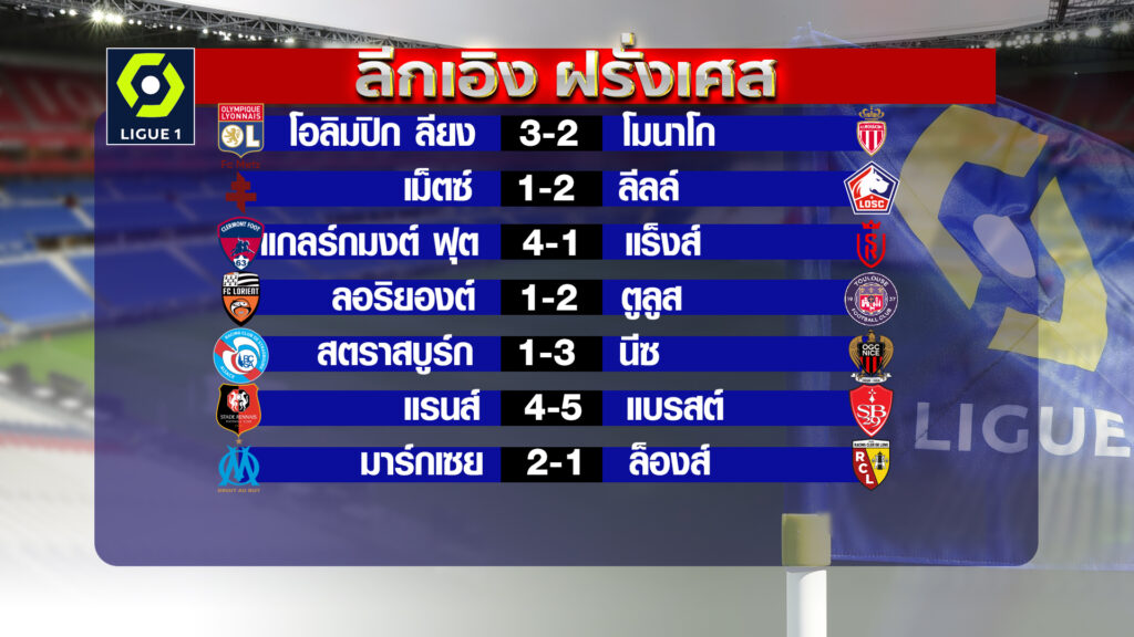 ด้านผลลีก เอิง ฝรั่งเศส คู่ที่น่าสนใจ โอลิมปิก ลียง ชนะ โมนาโก 3-2 ทำให้โมนาโก รองจ่าฝูง หมดสิทธิ์ทำคะแนนไล่ ปารีส แซง แชร์กแมง ได้ทันแล้ว ส่งผลให้เปแอสเชคว้าแชมป์ลีกไปครองอย่างเป็นทางการเป็นสมัยที่ 12 และเป็นแชมป์ 3 สมัยติด