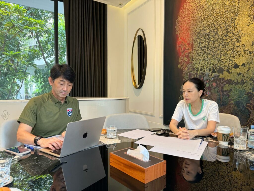 11 พ.ค.67-“มาดามแป้ง” นวลพรรณ ล่ำซำ นายกสมาคมกีฬาฟุตบอลฯ ประชุมร่วมกับ มาซาทาดะ อิชิอิ กุนซือทีมชาติไทย เกี่ยวกับแผนเตรียมทีม ก่อนมีโปรแกรมสำคัญ บุกเยือน จีน และ เปิดบ้านพบกับ สิงคโปร์ ในฟุตบอลโลก 2026 รอบคัดเลือก โซนเอเชีย รอบ 2 ช่วง 2 นัดสุดท้าย