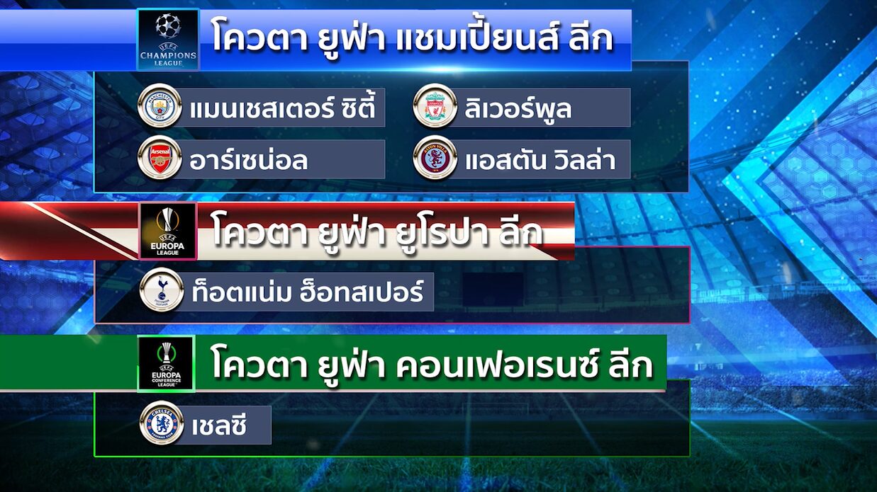 สำหรับทีมที่ได้โควตา ยูฟ่า แชมเปียนส์ ลีก 4 ทีม ประกอบด้วย แมนเชสเตอร์ ซิตี้, อาร์เซนอล, ลิเวอร์พูล และ แอสตัน วิลลา