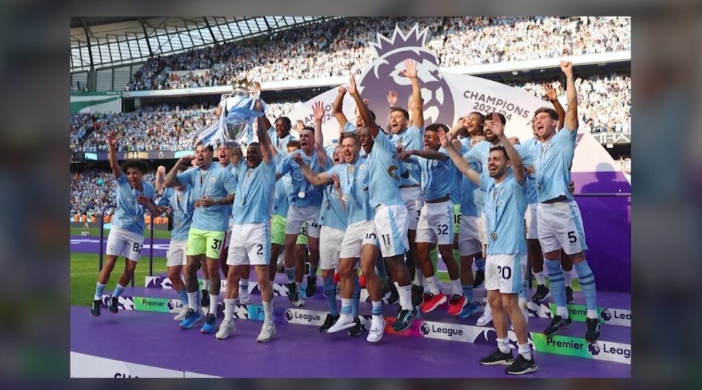 อังกฤษ 20 พ.ค. – บทสรุปฟุตบอลพรีเมียร์ลีก อังกฤษ 2023-2024 แมนเชสเตอร์ ซิตี้ สร้างประวัติศาสตร์คว้าแชมป์ 4 สมัยติดต่อกัน ขณะที่เจอร์เก้น คล็อปป์ อำลาการคุมทีมลิเวอร์พูลอย่างสุดซึ้ง