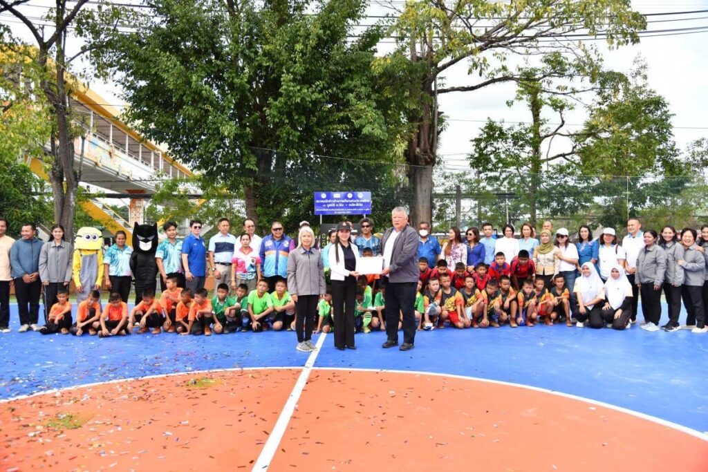 นายไพทูร ชุติมากรกุล นายกสมาคมกีฬานักข่าวช่างภาพกีฬาแห่งประเทศไทย และที่ปรึกษานายกรัฐมนตรี กล่าวว่า สมาคมกีฬานักข่าวช่างภาพกีฬาฯ ได้ร่วมกับ มูลนิธิ ย.โย่ง, แกรนด์สปอร์ต และศิษย์เก่าภูเก็ตวิทยาลัย รุ่นชงโคฟ้าใส ร่วมกันสร้างสนามสนามกีฬาเอนกประสงค์ และมอบให้กับโรงเรียนวัดเมืองใหม่ แห่งนี้เป็นแห่งที่ 16 ซึ่งได้มีการริเริ่มมาตั้งแต่ปี 2555 จนกระทั่งถึงปีนี้