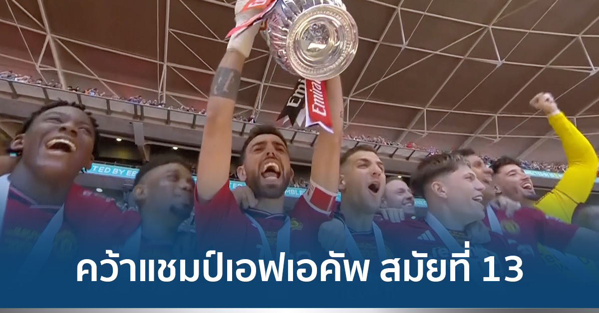 อังกฤษ 26 พ.ค.- ทีมปีศาจแดง แมนเชสเตอร์ ยูไนเต็ด เฉือนเอาชนะ แมนฯ ซิตี้ 2-1 คว้าแชมป์เอฟเอคัพ สมัยที่ 13 ปิดท้ายฤดูกาล 2023-2024