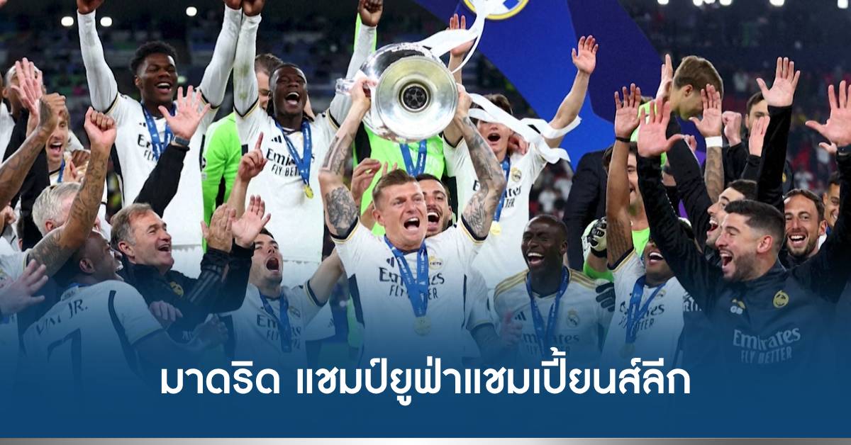 เกมนี้เป็นมาดริด มายิง 2 ประตูรวดจาก ดานี การ์บาฆาล นาที 74 และ วินิซิอุส จูเนียร์ นาที 83 ทำ เรอัล มาดริด ชนะ ดอร์ตมุนด์ 2-0 คว้าแชมป์ไปครองเป็นสมัยที่ 15 อย่างยิ่งใหญ่ พร้อมทำสถิติเข้าชิงรายการนี้ 9 ครั้งหลังสุดชนะรวด และยังทำทริปเบิ้ลแชมป์ในฤดูกาลนี้ หลังจากคว้าแชมป์ลาลีกา สเปน และ แชมป์ซูเปอร์โคปา เด เอสปันญามาครองก่อนหน้านี้ และเป็นการอำลาการเลิกเล่นของ โทนี่ โครส นักเตะชาวเยอรมัน ได้อย่างสวยหรูให้กับเรอัล มาดริด ด้วย นอกจากนี้ยังเป็นแชมป์ยูฟ่า แชมเปียนส์ ลีก สมัยที่ 6 ในการค้าแข้งของ โทนี โครส หลังจากที่ก่อนหน้านี้ทำได้กับ บาเยิร์น มิวนิก 1 สมัย และการได้แชมป์ครั้งนี้เป็นสมัยที่ 5 กับทีมเรอัล มาดริด หลังจากลงเล่นให้กับเรอัล มาดริด มา 10 ฤดูกาล นับตั้งแต่ปี 2014 โดยลงเล่นให้กับเรอัล มาดริดทุกรายการ 464 นัด ยิง 28 ประตู 98 แอสซิส โดย โทนี่ โครส จะแขวนสตั๊ด อย่างเป็นทางการหลังจากช่วยทีมชาติเยอรมนี ลงเล่นฟุตบอลชิงแชมป์แห่งชาติยุโร หรือ ยูโร 2024.-สำนักข่าวไทย