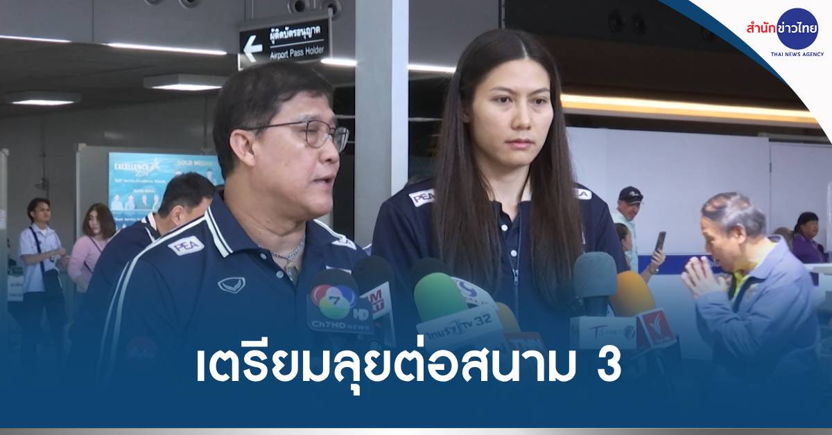 ซึ่งเมื่อช่วงสายที่ผ่านมา “โค้ชยะ” นาวาอากาศโท ณัฐพนธ์ ศรีสมุทรนาค หัวหน้าโค้ชทีมชาติไทย พร้อมด้วย ทัดดาว นึกแจ้ง กัปตันทีม ได้นำลูกทีมเดินทางกลับมาถึงสนามบินสุวรรณภูมิ โดยมีนายสมพร ใช้บางยาง นายกสมาคมกีฬาวอลเลย์บอลแห่งประเทศไทย ให้การต้อนรับท่ามกลางบรรยากาศที่คึกคัดกว่าการกลับมาในสัปดาห์แรก ซึ่งทีมนักตบสาวไทยจะกลับมาฝึกซ้อมต่อก่อนที่จะเดินทางไปฮ่องกง ไปแข่งขันสัปดาห์ที่สามในสัปดาห์หน้า
