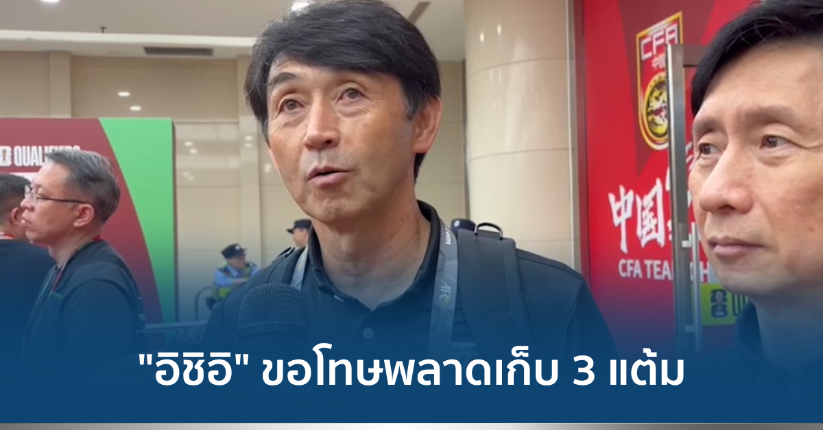 จีน 7 มิ.ย. – มาซาทาดะ อิชิอิ กุนซือทีมชาติไทย ขอโทษไม่สามารถเก็บ 3 แต้ม ยอมรับตนเองผิดพลาดในการเปลี่ยนตัวผู้เล่น ขอลุ้นต่อในเกมพบสิงคโปร์ 11 มิ.ย.นี้ ที่ราชมังคลากีฬาสถาน
