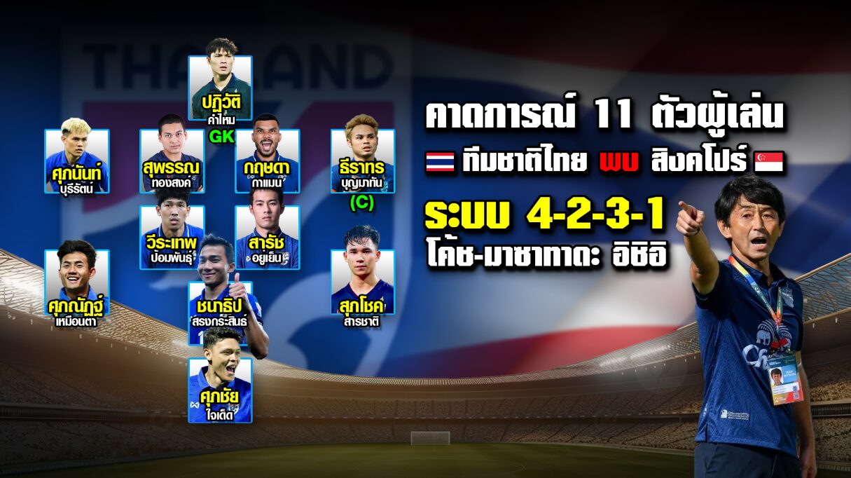 กทม. 11 มิ.ย. – มาซาทาดะ อิชิอิ เตรียมเน้นเกมรุกหวังถล่ม สิงคโปร์ นัดชี้ชะตาเข้ารอบ ศึกฟุตบอลโลก 2026 รอบคัดเลือก โซนเอเชีย ค่ำวันนี้