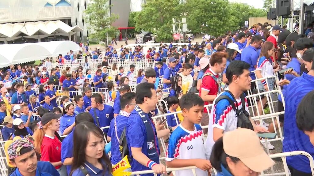 บรรยากาศก่อนเกมทีมชาติไทย พบ สิงคโปร์ ศึกฟุตบอลโลก 2026 รอบคัดเลือก โซนเอเชีย กลุ่มซี นัดสุดท้าย ที่ราชมังคลากีฬาสถาน แฟนบอลทยอยเข้ามาบริเวณสนามตั้งแต่ช่วงบ่าย คาดว่าแฟนบอลจะเข้ามาชมเต็มความจุสนาม 48,900 คน