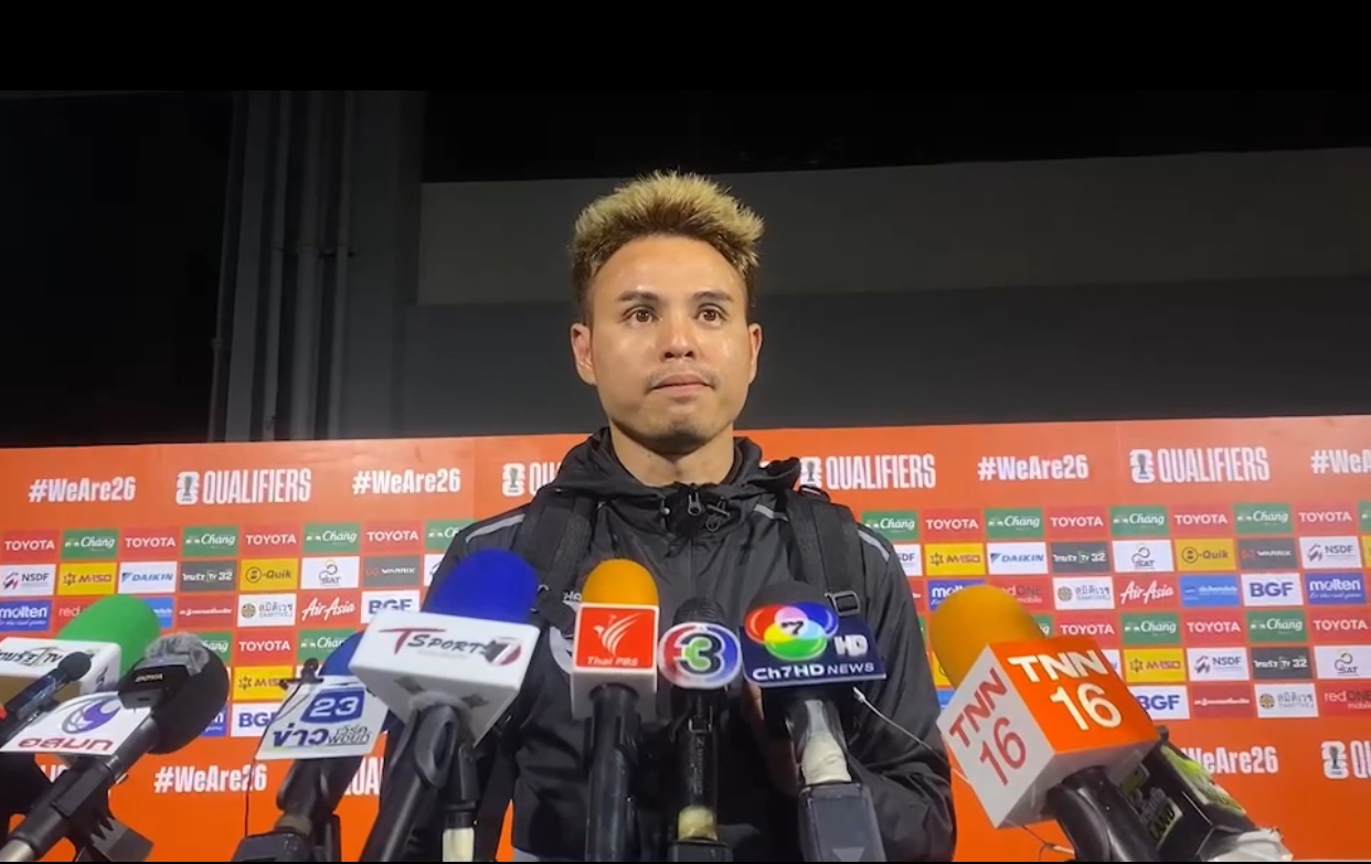 12 มิ.ย.67 ราชมังคลาฯ- ”อุ้ม“ธีราทร บุญมาทัน กัปตันทีมฟุตบอลทีมชาติไทย กล่าวหลังจบเกมว่า เต็มที่แล้ว เป็นแมตซ์ที่คิดว่าจะผ่านรอบต่อไปให้ได้ แฟนบอลก็เข้ามาเชียร์เยอะ และเป็นความคาดหวังของคนไทยทั้งประเทศ รู้สึกผิดหวัง ต่อตัวเองและผลการแข่งขัน ขอโทษแฟนบอลและคนไทยทุกคนที่ไม่สามารถไปต่อได้ จริงๆอาจจะเป็นฟุตบอลโลกครั้งสุดท้ายของตัวเอง และหลายๆคน อยากจะฝากน้องๆรุ่นต่อๆไปด้วยให้ผ่านเข้ารอบไปเล่นฟุตบอลโลกให้ได้