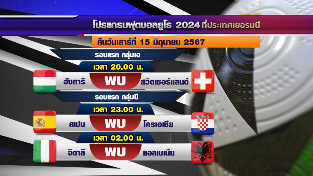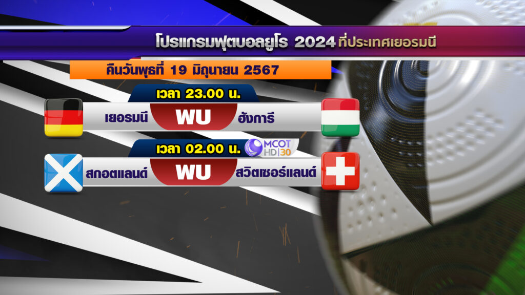 สำหรับโปรแกรมนัดต่อไป เยอรมนี จะพบกับ ฮังการี และ สกอตแลนด์ จะพบกับ สวิตเซอร์แลนด์ ซึ่งคู่นี้ ช่อง 9 MCOT HD หมายเลข 30 จะถ่ายทอดสดให้ชมกันด้วย ในคืนวันพุธที่ 19 มิถุนายน เวลา 02.00 น.