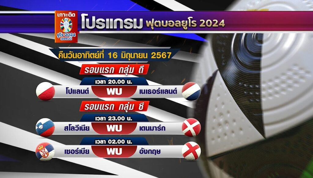 โปรแกรมคืนนี้ รอบแรก กลุ่ม ดี เวลา 20.00 น. โปแลนด์ พบ เนเธอร์แลนด์