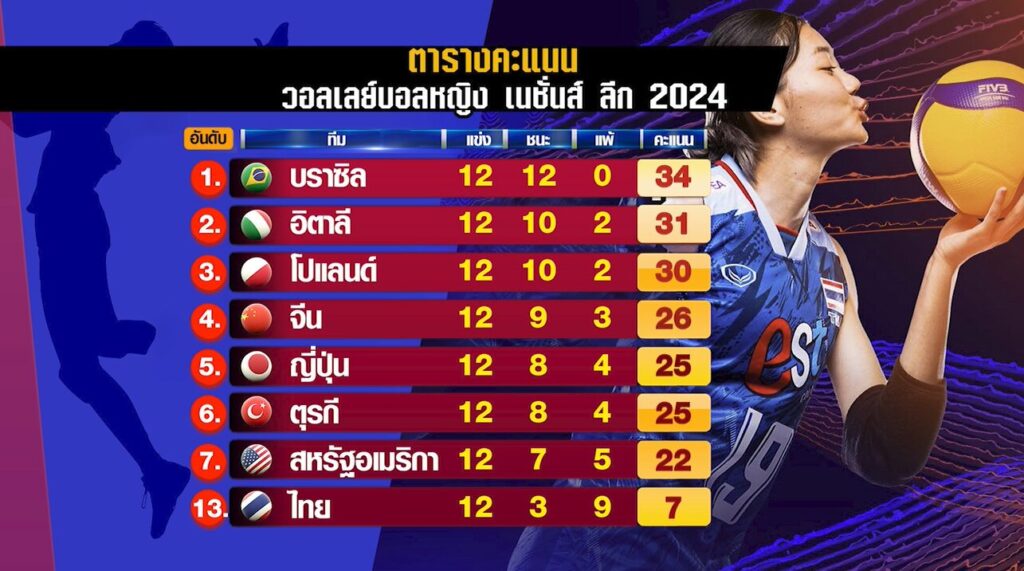 ส่วนผลงานของทีมตบสาวไทย หล่นไปอยู่อันดับ 14 ของโลก จากผลงานการแข่งขันเนชั่นส์ ลีก 3 สนาม โดยแข่ง 12 นัด ชนะ 3 แพ้ 9 มี 7 คะแนน จบอันดับ 13 ของตารางคะแนน แต่ได้สิทธิ์เข้ารอบไฟนอลส์ในฐานะเจ้าภาพ