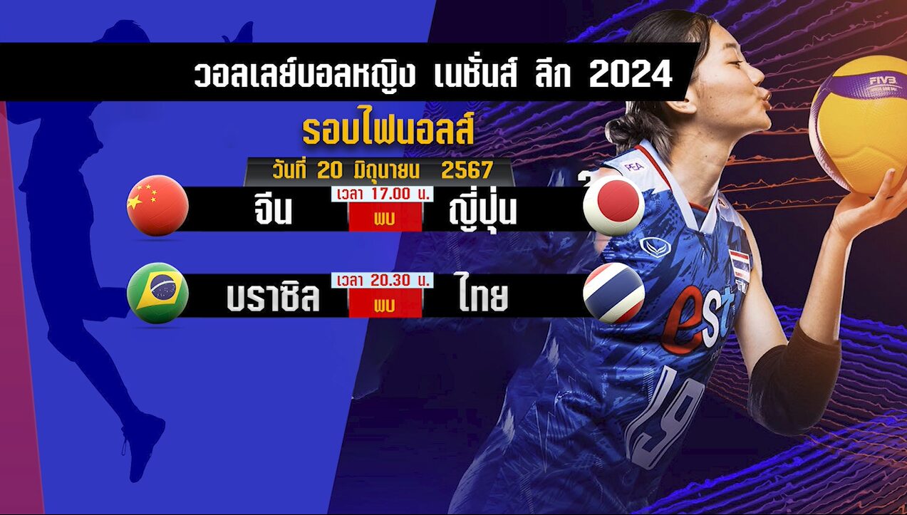 โปรแกรมเนชันส์ลีก รอบไฟนอลส์ (8 ทีมสุดท้าย) บราซิล อันดับ 3 ของโลก จะพบกับ ทีมชาติไทย ในวันพฤหัสบดีที่ 20 มิถุนายนนี้ เวลา 20.30 น. และ จีน พบ ญี่ปุ่น เวลา 17.00 น. วันศุกร์ที่ 21 มิ.ย.67 อิตาลี พบ สหรัฐอเมริกา เวลา 17.00 น. และ โปแลนด์ พบ ตุรกี เวลา 20.30 น. แฟนกีฬาชาวไทย ติดตามเชียร์นักตบลูกยางสาวไทยกันสุดใจเหมือนเช่นเคย .-สำนักข่าวไทย