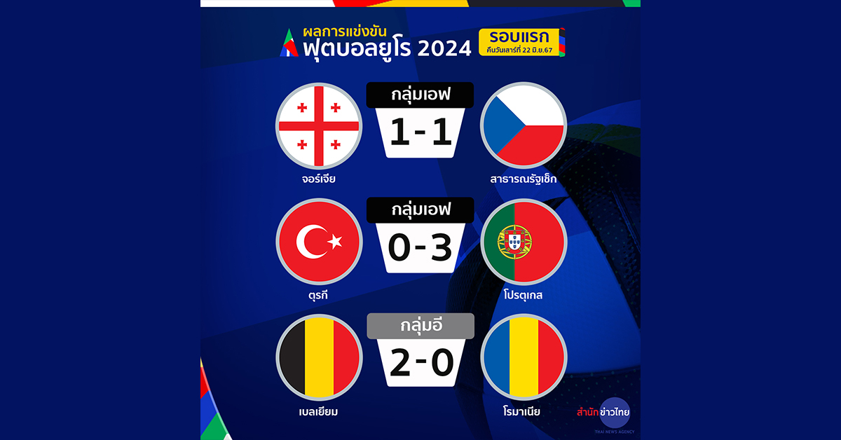 เยอรมนี 23 มิ.ย.- ผลบอลยูโร 2024 เบลเยียม ชนะ โรมาเนีย 2-0 เก็บ 3 คะแนนสำเร็จ ทำให้กลุ่มอี มี 3 แต้มเท่ากัน ยังมีลุ้นเข้ารอบทุกทีม