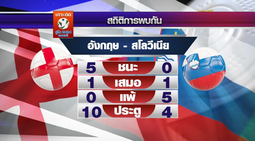 สถิติการพบกันของคู่นี้ เตะกันมา 6 นัด อังกฤษ ชนะ 5 นัด เสมอกัน 1 นัด โดยอังกฤษ ยิงได้ 10 ประตู สโลวีเนีย ยิงได้ 4 ประตู