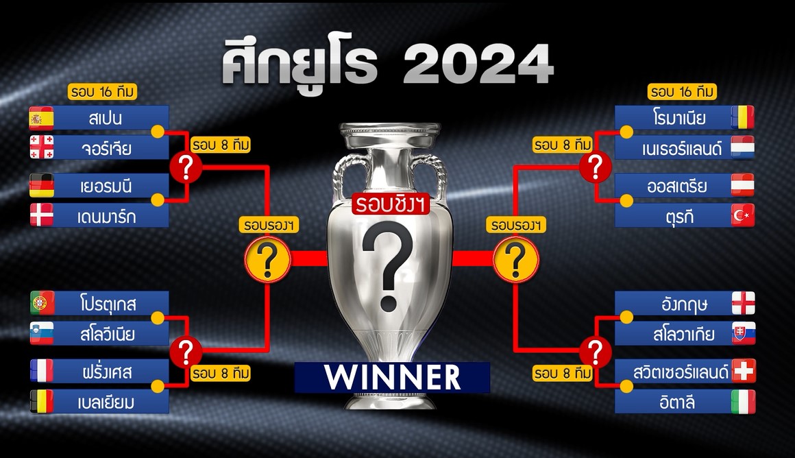 โปรแกรมฟุตบอลยูโร 2024 รอบ 16 ทีมสุดท้าย คืนวันเสาร์ที่ 29 มิถุนายน