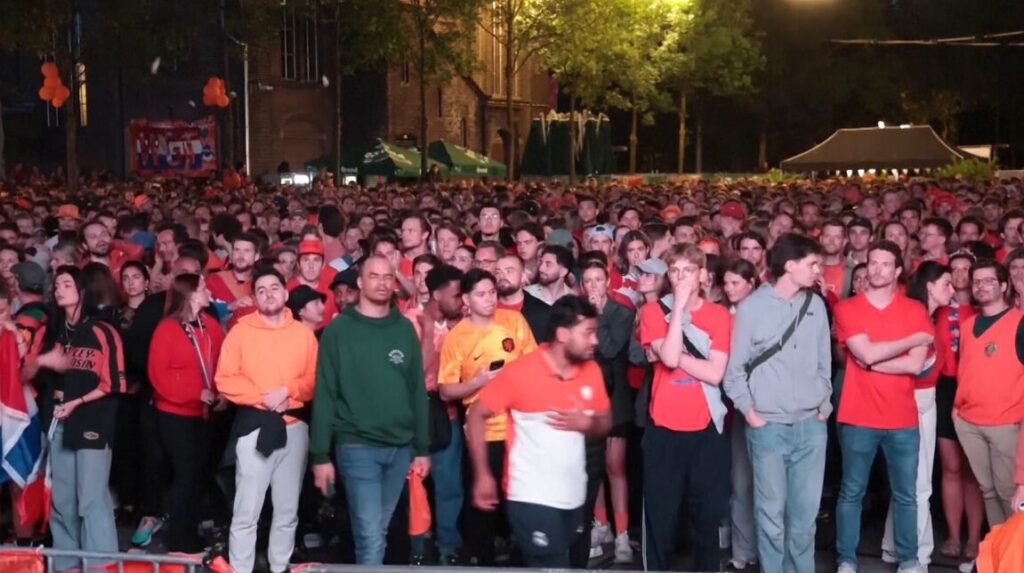 ส่วนแฟนบอลเนเธอร์แลนด์ในกรุงอัมสเตอร์ดัม ได้รวมตัวกันเชียร์บอลผ่านจอยักษ์ และได้เฮก่อน เมื่อซาฟี ซิมอนส์ ยิงประตูให้ทีมขึ้นนำ แต่ต้องมาผิดหวังเมื่อเสีย 2 ประตู และทีมต้องตกรอบรองชนะเลิศไป
