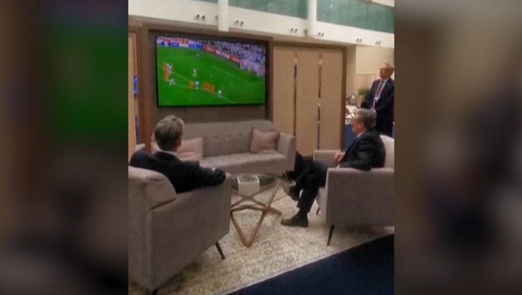 ขณะเดียวกันมีภาพว่า เคียร์ สตาร์เมอร์ นายกรัฐมนตรีแห่งสหราชอาณาจักร และดิก สคูฟ นายกรัฐมนตรีเนเธอร์แลนด์ นั่งชมเกมคู่นี้ด้วยกัน เนื่องจากทั้งคู่ได้ไปร่วมประชุม นาโต ซัมมิต ในรัฐวอชิงตัน สหรัฐอเมริกาด้วย .-สำนักข่าวไทย