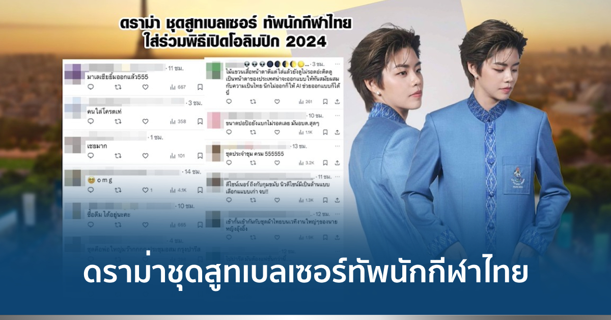 ดราม่าชุดสูทเบลเซอร์ของนักกีฬาไทย หลังจากมีภาพออกมา ซึ่งนักกีฬาจะใส่ในพิธีเปิดการแข่งขันโอลิมปิเกมส์ 2024 มีแฟนกีฬาชาวไทยวิพากษ์วิจารณ์ชุดเบลเซอร์ดังกล่าวในโลกโซเชียลจำนวนมาก มองว่าชุดดังกล่าวอาจจะไม่เข้ากับยุคสมัยที่ล้าหลังหากเทียบกับชุดชาติอื่นๆ