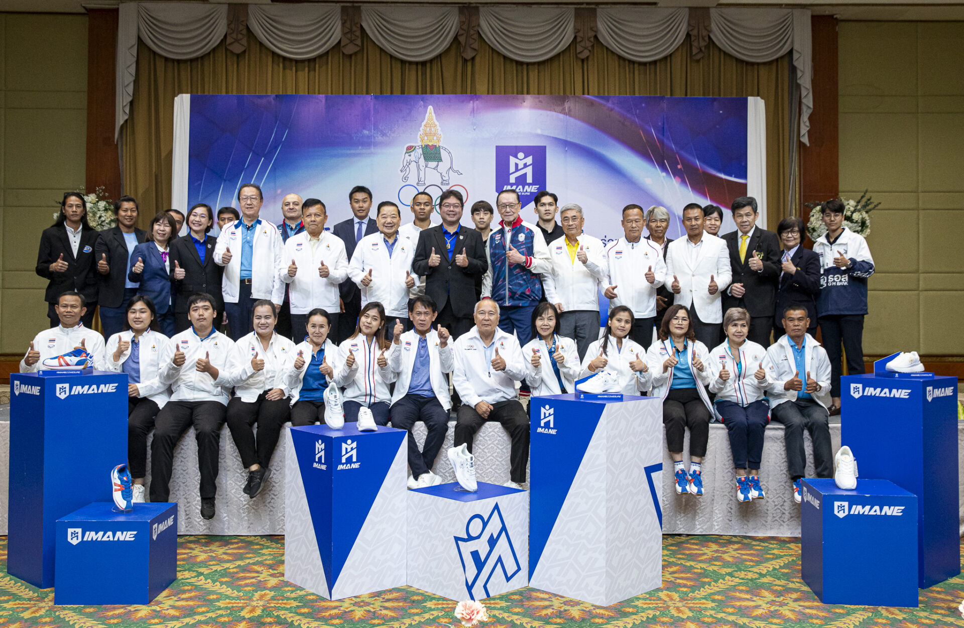 โดยได้รับเกียรติจาก ศาสตราจารย์ (พิเศษ) เจริญ วรรธนะสิน รองประธานกรรมการคณะกรรมการโอลิมปิคแห่งประเทศไทยฯ, พลเอกมังกร โกสินทรเสนีย์ ที่ปรึกษาคณะกรรมการโอลิมปิคแห่งประเทศไทยฯ, นายแพทย์วารินทร์ ตัณฑ์ศุภศิริ รองประธานกรรมการคณะกรรมการโอลิมปิกแห่งประเทศไทย, พลเอก รณชัย มัญขุสุนทรกุล รองเลขาธิการคณะกรรมการโอลิมปิคแห่งประเทศไทยฯ, พันตำรวจเอก โกวิทย์ จิรชนานนท์ ผู้ช่วยเหรัญญิกฯ, พลเรือเอก ชัยณรงค์ เจริญรักษ์ กรรมการบริหารฯ และ ดร.นิวัตน์ ลิ้มสุขนิรันดร์ กรรมการบริหารฯ เป็นตัวแทนร่วมแถลงข่าวความร่วมมือในครั้งนี้กับ “บอสไต๋” คุณทักขศิษฏ์ จิตติวาณิชย์ ประธานกรรมการ บริษัท ไอมาเน่ (ไทยแลนด์) จำกัด แบรนด์กีฬา “IMANE”