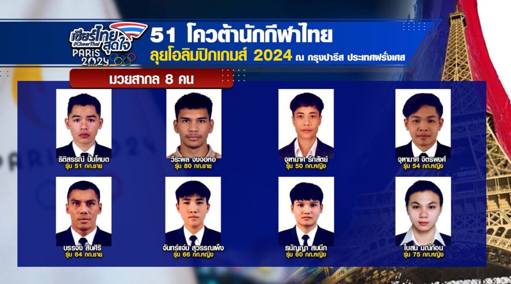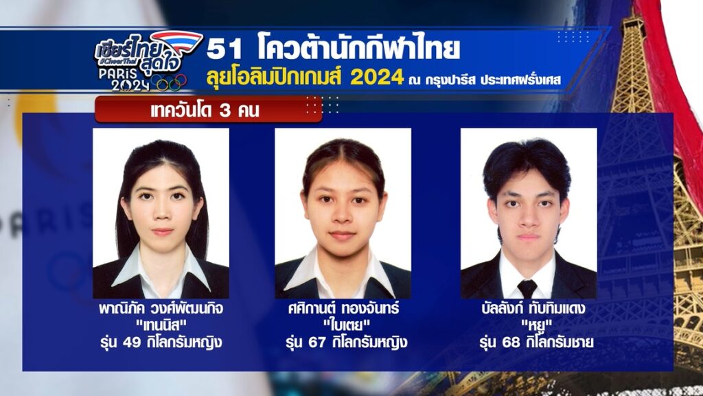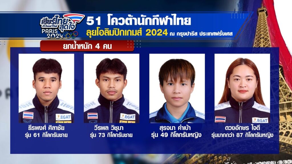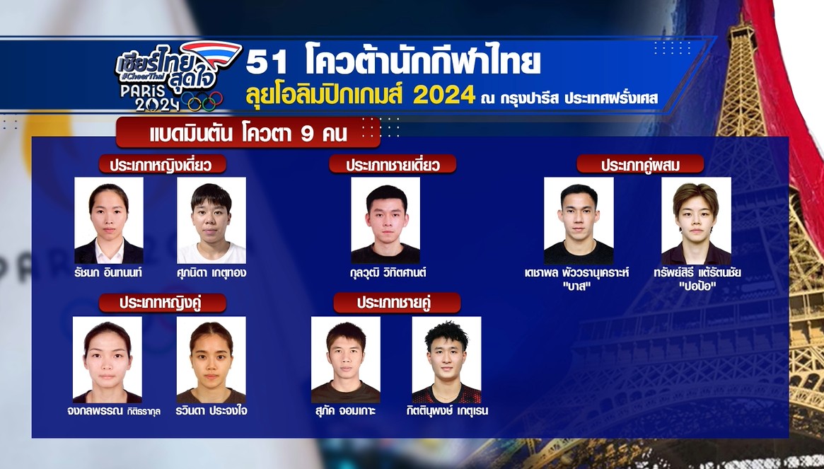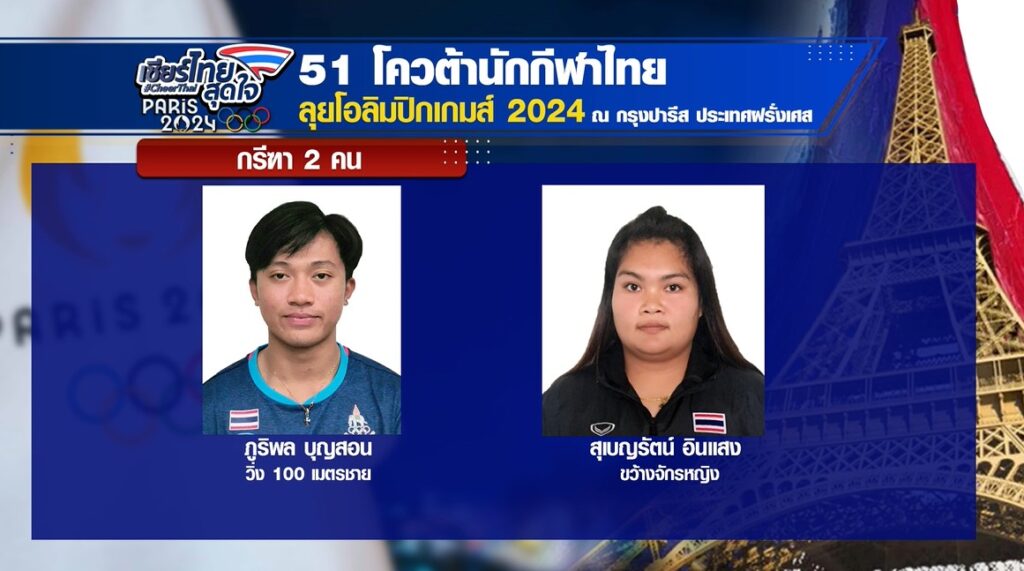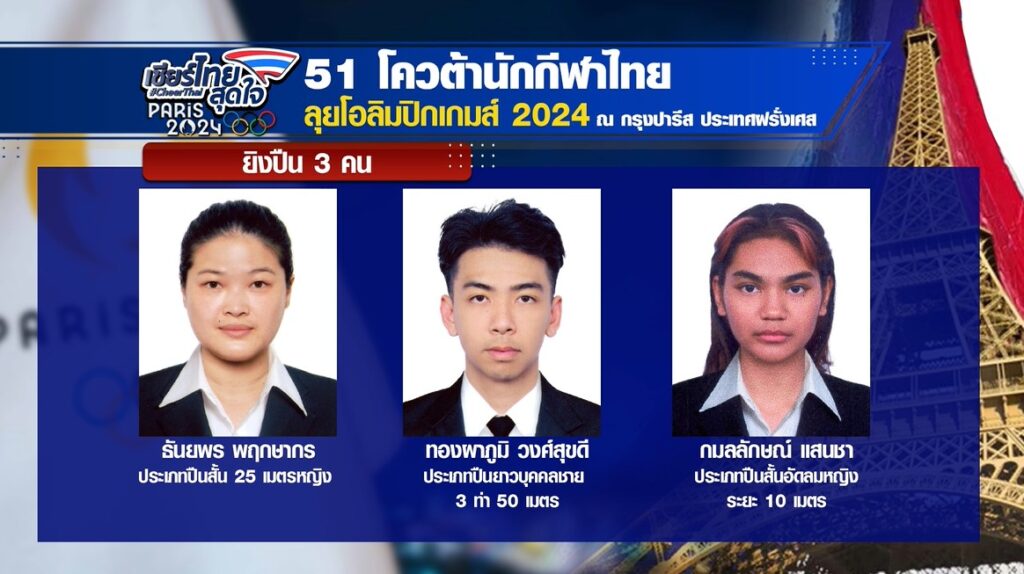 22 ก.ค. – กีฬาโอลิมปิก 2024 ใกล้จะเปิดฉากอย่างเป็นทางการแล้ว วันนี้เราไปดูโฉมหน้า 51 นักกีฬาไทยที่ได้โควตาไปร่วมชิงชัยในปารีสเกมส์ครั้งนี้