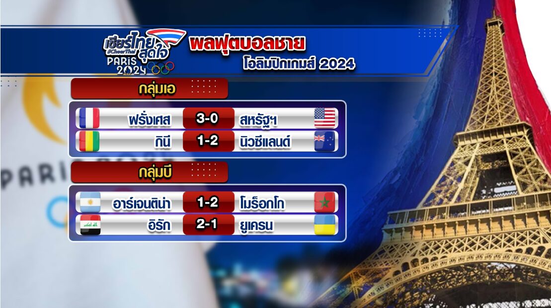 ฝรั่งเศส 25 ก.ค. – อาร์เจนตินา เปิดสนามฟุตบอลชายโอลิมปิกเกมส์ 2024 ด้วยการแพ้ โมร็อกโก 1-2 ในเกมสุดดราม่าทดเวลา 15 นาที พักเตะอีก 2 ชั่วโมง