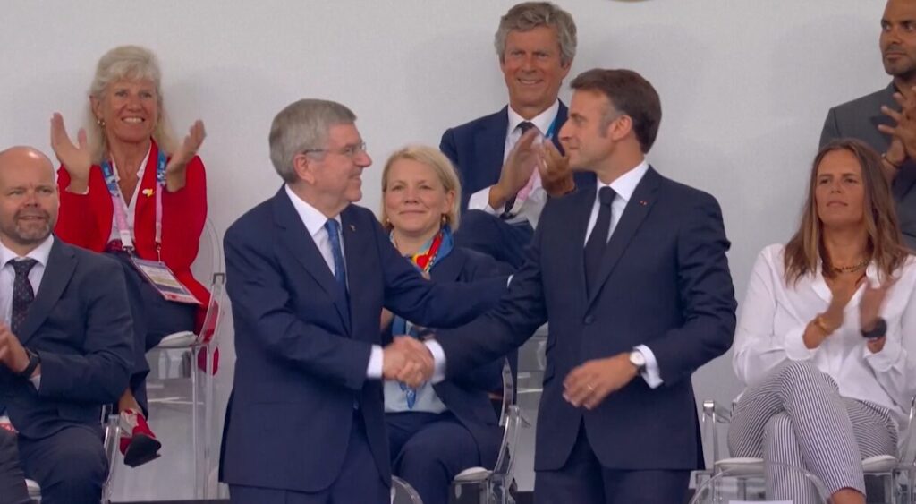 โอลิมปิกเกมส์ 2024 “ปารีสเกมส์” ที่กรุงปารีส ประเทศฝรั่งเศส ได้เปิดฉากขึ้นอย่างยิ่งใหญ่ท่ามกลางสายฝนที่ตกลงมาตลอดเมื่อช่วงเช้ามืดที่ผ่านมา โดยมีนายเอ็มมานูเอล มาครง ประธานาธิบดีฝรั่งเศส เป็นประธาน พร้อมนายโทมัส บาค ประธานโอลิมปิกสากล หรือไอโอซี และผู้นำจากทั่วโลก โดยนักกีฬา 206 ประเทศจากทั่วโลก ได้ล่องเรือไปตามแม่น้ำแซน ระยะทาง 6 กิโลเมตร สลับกับการแสดงที่เจ้าภาพจัดขึ้นตลอดพิธีเปิดกว่า 4 ชั่วโมงได้อย่างลงตัว
