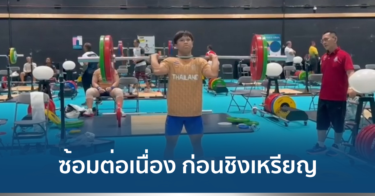 นักกีฬายกน้ำหนักทีมชาติไทย ชุดสู้ศึกโอลิมปิก “ปารีสเกมส์ 2024” กลับมาลงฝึกซ้อมต่อเนื่อง หลังจากได้พักร่างกาย 1 วัน นำโดย สุรจนา คำเบ้า รุ่น 49 กิโลกรัมหญิง, ดวงอักษร ใจดี รุ่น +81 กิโลกรัมหญิง, ธีรพงศ์ ศิลาชัย รุ่น 61 กิโลกรัมชาย และวีรพล วิชุมา รุ่น 73 กิโลกรัมชาย