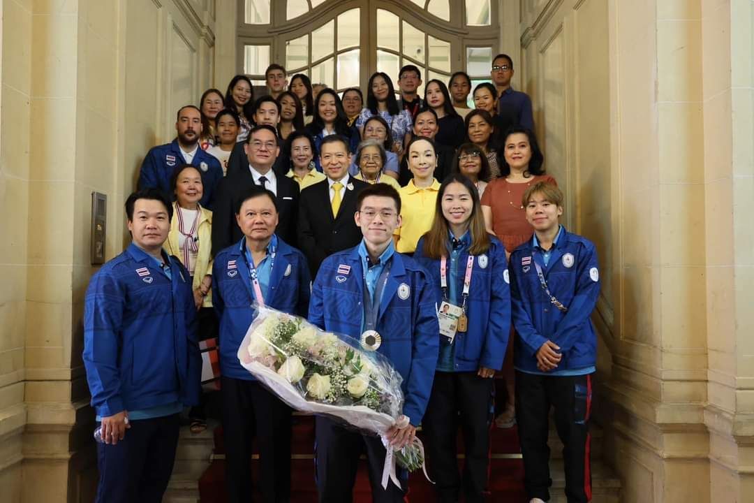 โดยมี คุณหญิงปัทมา ลีสวัสดิ์ตระกูล กรรมการคณะกรรมการโอลิมปิกสากล หรือ ไอโอซีเมมเบอร์ รองประธานสหพันธ์แบดมินตันโลก และนายกสมาคมกีฬาแบดมินตันแห่งประเทศไทยฯ, นายธนา ไชยประสิทธิ์ หัวหน้าคณะนักกีฬาทีมชาติไทย ข้าราชการและลูกจ้างของสถานเอกอัครราชทูตและทีมประเทศไทยประจำกรุงปารีส พร้อมด้วยผู้แทนชุมชนไทยในประเทศฝรั่งเศสเข้าร่วมด้วย .614.-สำนักข่าวไทย
