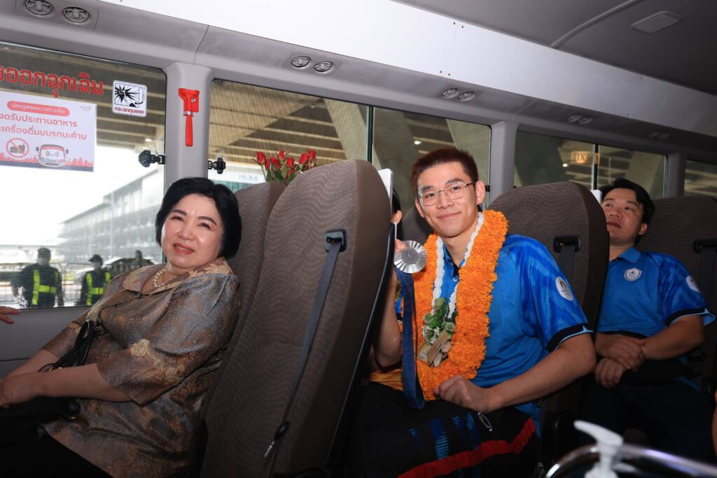 นายเสริมศักดิ์ พงษ์พานิช รัฐมนตรีว่าการกระทรวงการท่องเที่ยวและกีฬา , ผู้บริหารจากการกีฬาแห่งประเทศไทย , พลอากาศเอก มณฑล สัชฌุกร อุปนายกสมาคมกีฬาแบดมินตันแห่งประเทศไทย ในพระบรมราชูปถัมภ์ , “แม่ปุก” กมลา ทองกร ประธานโรงเรียนแบดมินตันบ้านทองหยอด , ณัทธร ศรีนิเวศน์ ผู้ช่วยกรรมการผู้จัดการใหญ่ บริษัท โตโยต้า มอเตอร์ ประเทศไทย จำกัด มาต้อนรับและร่วมแสดงความยินดีอย่างอบอุ่น