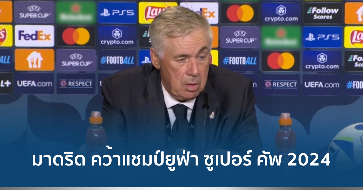 โปแลนด์ 15 ส.ค. – คาร์โล อันเชลอตติ กุนซือ “ราชันชุดขาว” เรอัล มาดริด ชื่นชม คิลิยัน เอ็มบัปเป ศูนย์หน้าคนใหม่ ที่ยิง 1 ประตู ช่วยให้ทีมคว้าแชมป์ยูฟ่า ซูเปอร์ คัพ 2024
