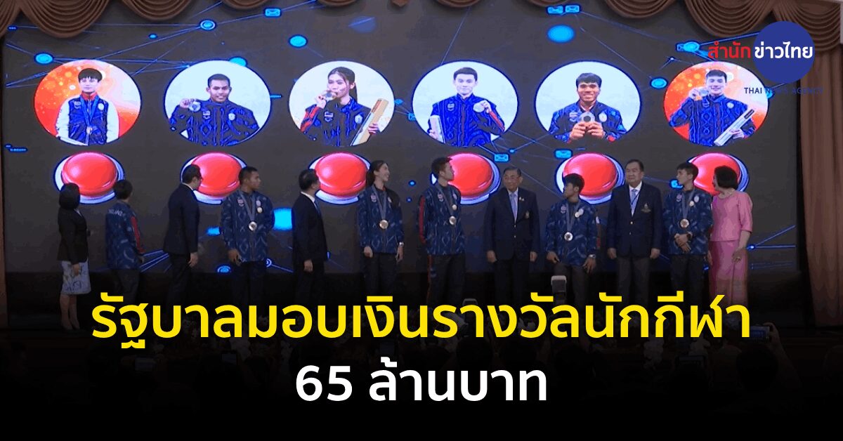 ขบวนได้เข้าไปยังทำเนียบรัฐบาล โดยนักกีฬาทั้งหมดได้เข้าร่วมงานเลี้ยงฉลองชัย และมอบเงินรางวัล มีนายสุริยะ จึงรุ่งเรืองกิจ รักษาการรองนายกรัฐมนตรีและรัฐมนตรีว่าการกระทรวงคมนาคม เป็นประธานในการมอบรางวัล เหรียญทอง 12 ล้านบาท, เหรียญเงิน 7.2 ล้านบาท และเหรียญทองแดง 4.8 ล้านบาท ส่วนนักกีฬาที่ไม่ได้เหรียญรางวัลมอบให้คนละ 100,000 บาท จำนวน 47 คน รวมเงินรางวัลให้นักกีฬา โค้ช สมาคมเป็นเงินทั้งสิ้น 65,900,000 บาท ซึ่งในครั้งนี้มอบเงินโดยเป็นการโอนเงินแบบเรียลไทม์ให้นักกีฬาทันทีด้วย