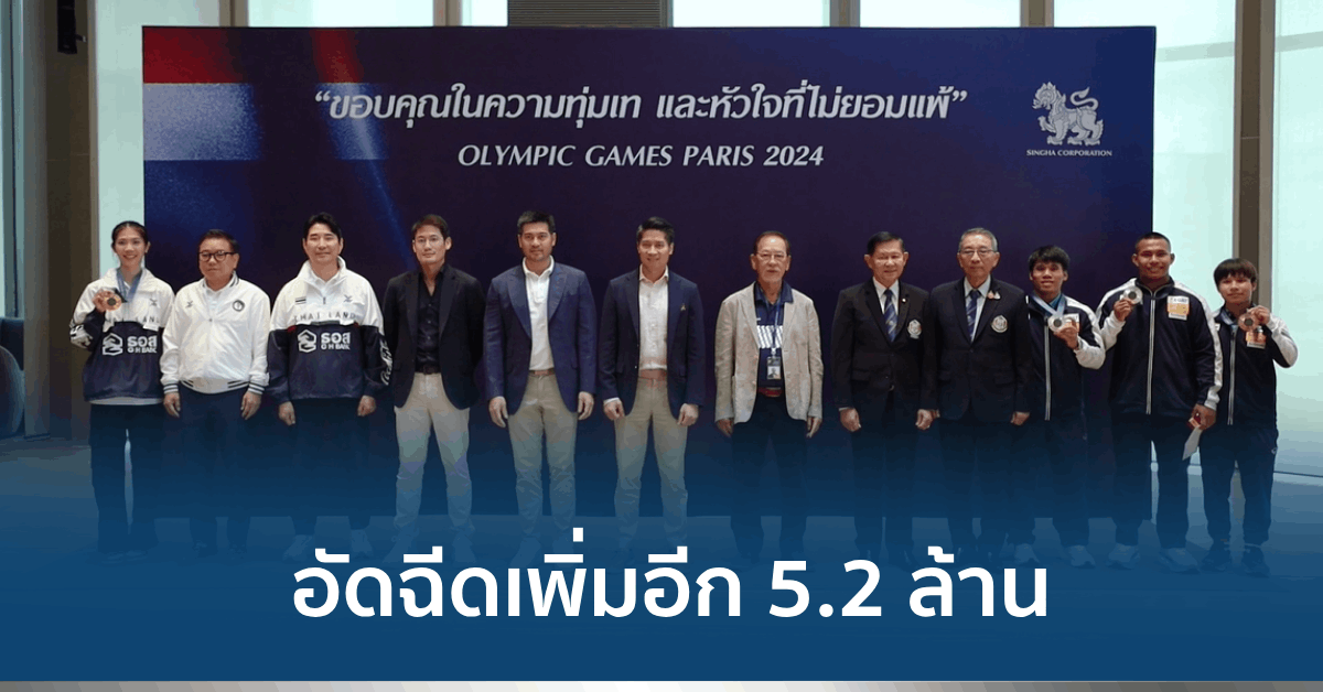 22 ส.ค. – สิงห์ คอร์เปอเรชั่น อัดฉีดนักกีฬาชุดเหรียญโอลิมปิกเกมส์ 2024 เพิ่มอีก รวมทั้งสิ้น 5.2 ล้านบาท
