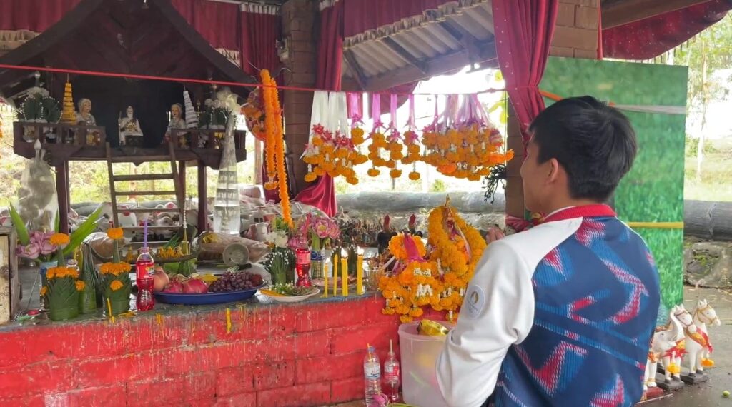 โดยจันทร์แจ่ม ได้ไปไหว้ศาลปู่ดำ ที่ฝายห้วยงู หมู่ 1 ต.วังหลวง อ.เฝ้าไร่ จ.หนองคาย ซึ่งเป็นศาลปู่ตาศักดิ์สิทธิ์ที่ชาวบ้านเคารพศรัทธา พร้อมโชว์เหรียญทองแดงให้ปู่ดำได้ชื่นชม และบอกว่าตนนำเหรียญรางวัลกลับมาให้ชมแล้ว และได้จัดหมอลำซิ่งมาแก้บนด้วย